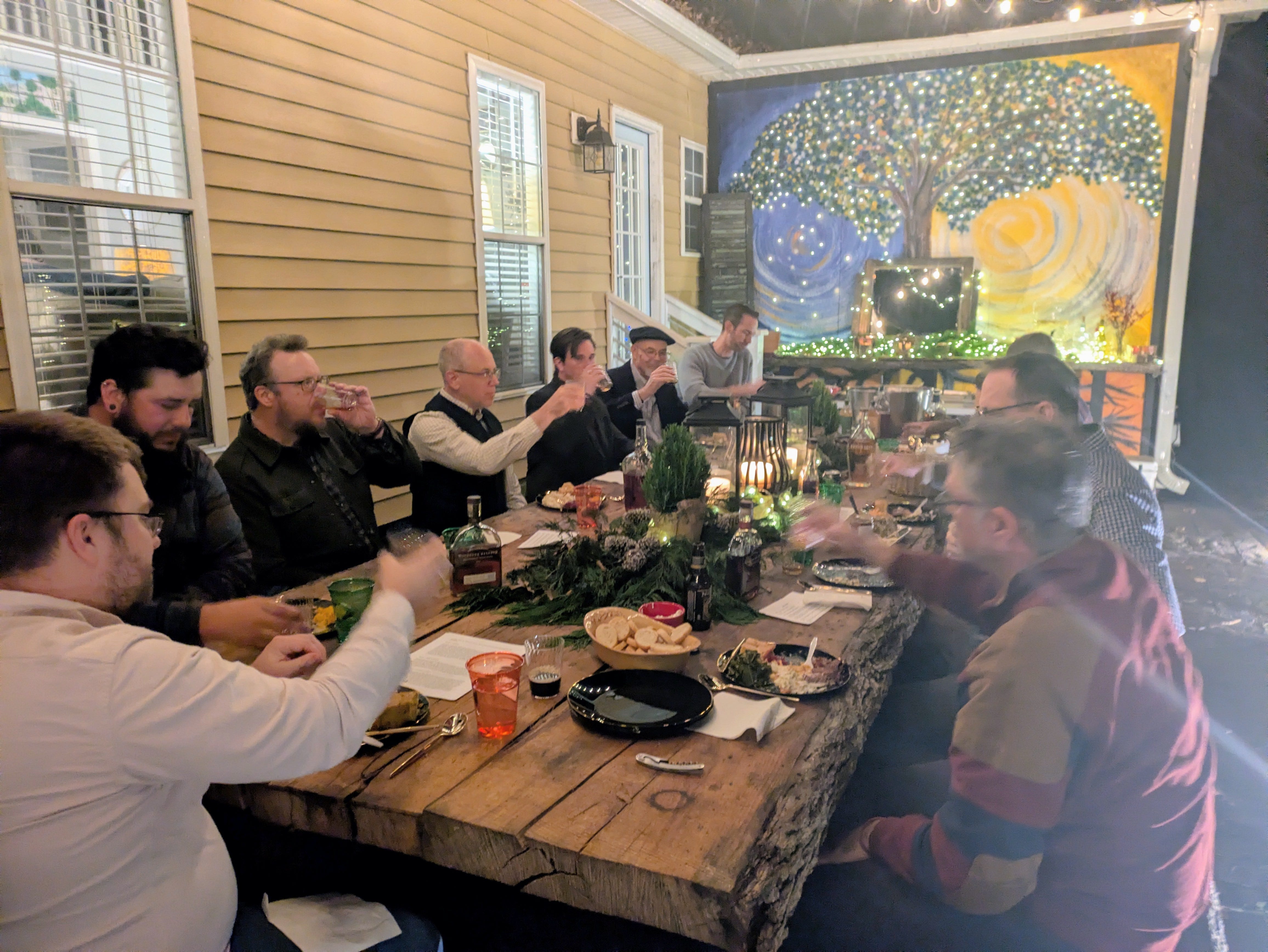 Twelve people. Fifteen. Eighteen. Whatever fits the room and the food.